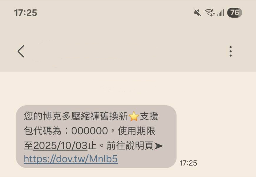 【💡小提醒】本活動以簡訊發送之代碼,使用期限至2025/10/03,逾期恕無法補發。