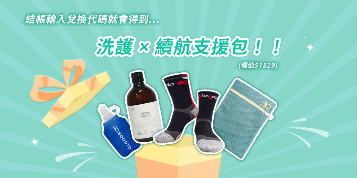1. 寄回博克多壓縮褲,即可獲得一組代碼,下單後會依寄回的件數贈送對應數量的洗護×續航支援包。