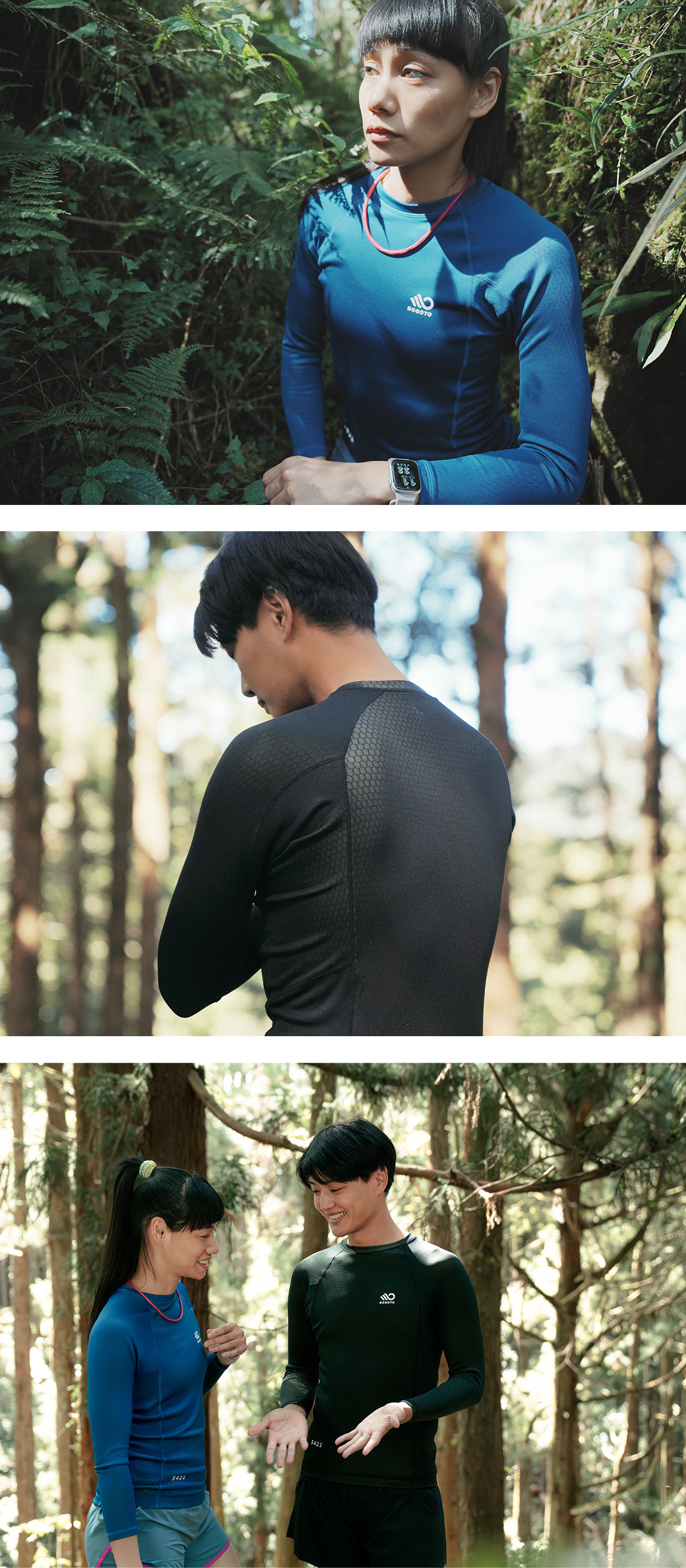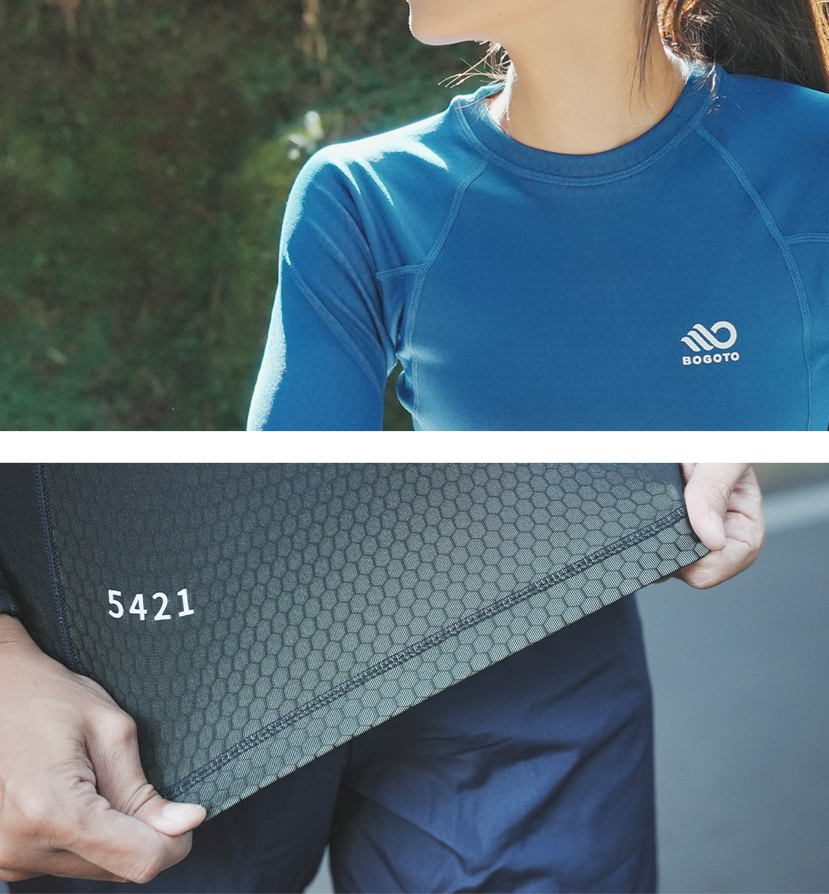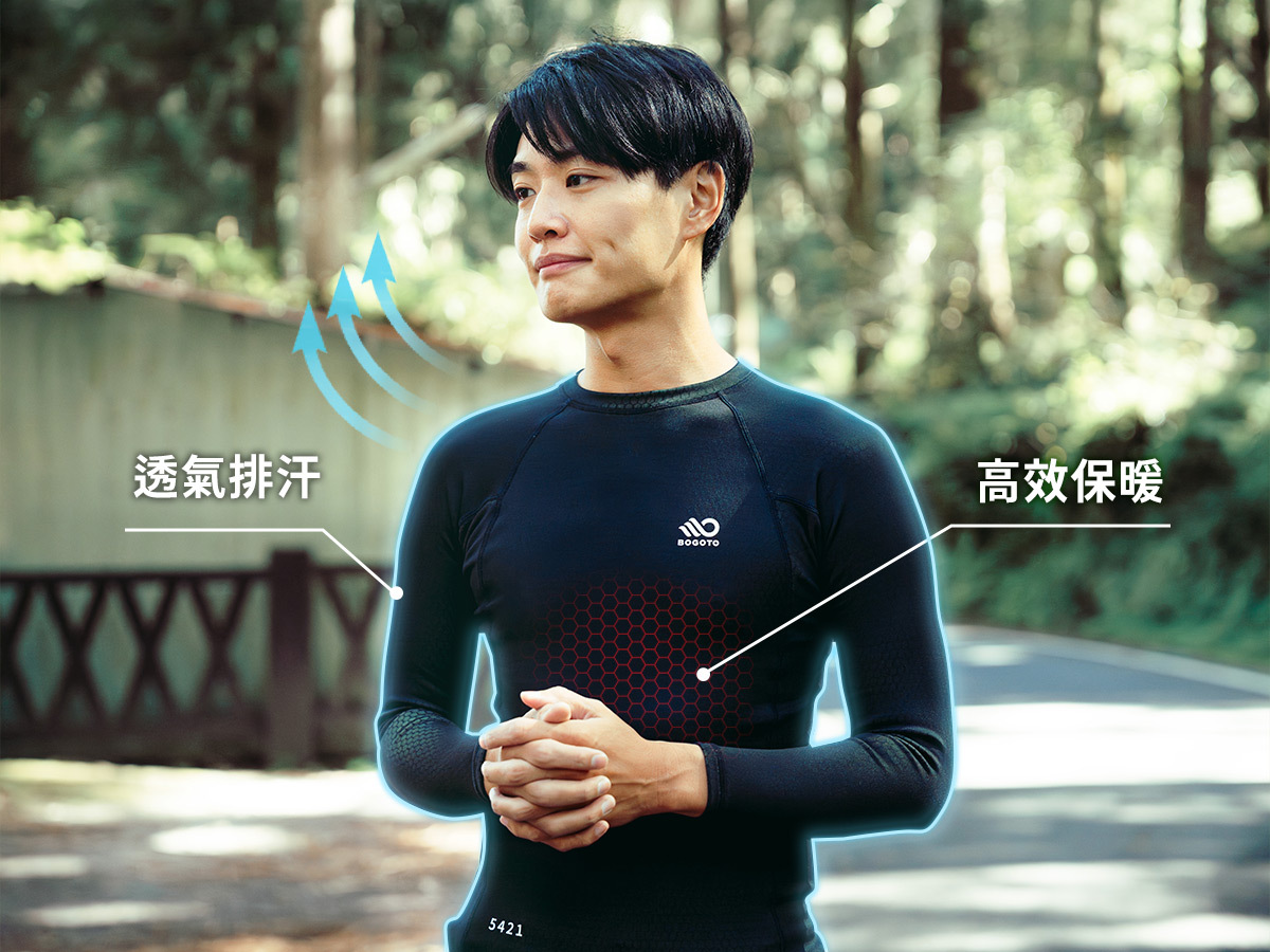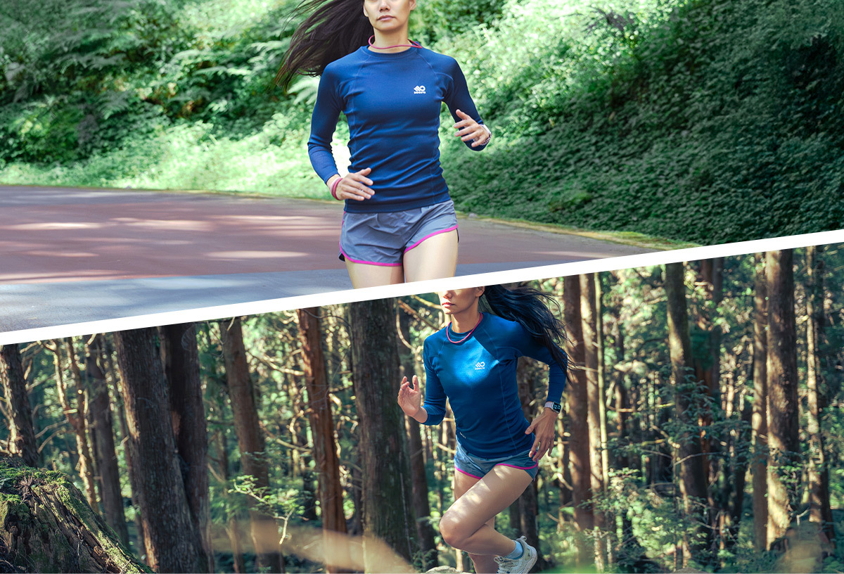 上半身在流汗後呈現微濕、卻不黏身的舒適體感;