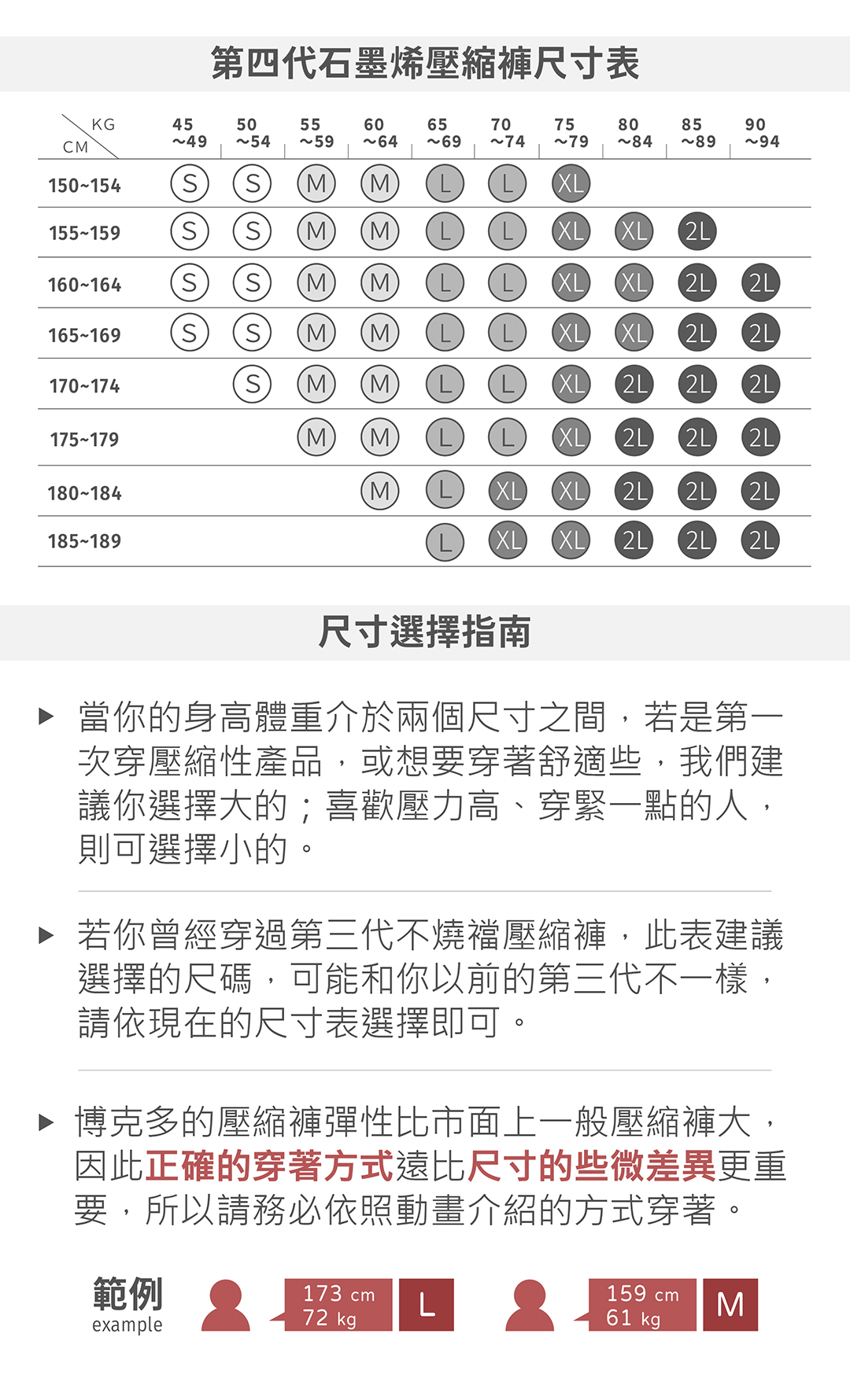 如果你曾購買過第三代不燒襠壓縮褲,因第四代的尺寸表和第三代不同,請不要直接選擇和第三代相同的尺碼,務必依照現在的尺寸表選擇唷😊