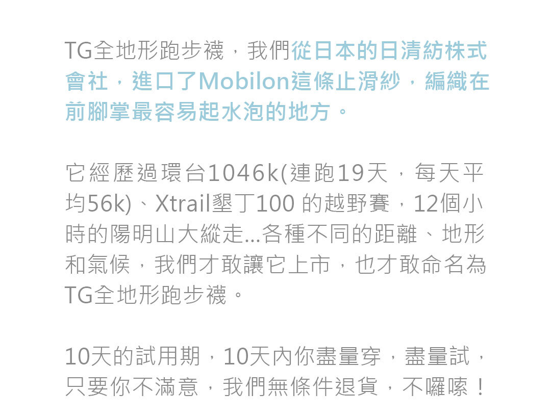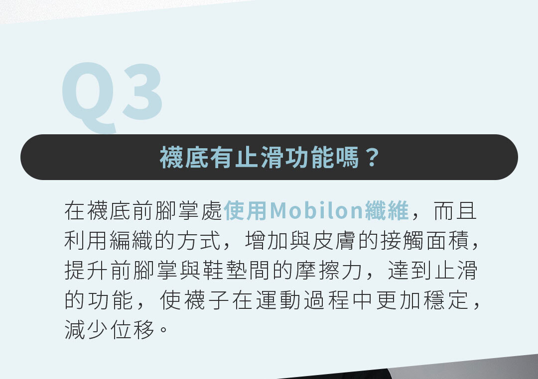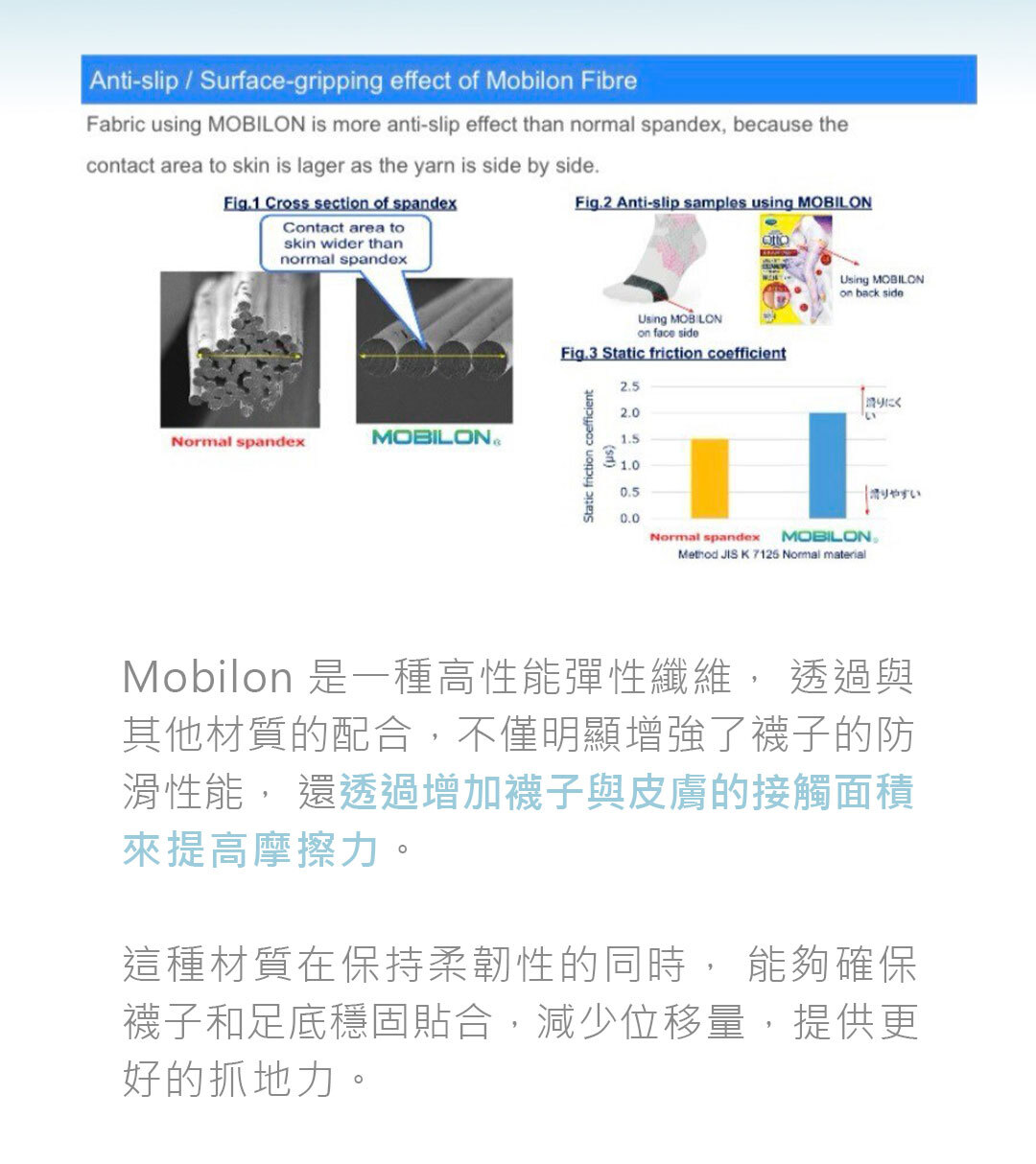 ● 採用日本Mobilon止滑紗,提升前腳掌摩擦力